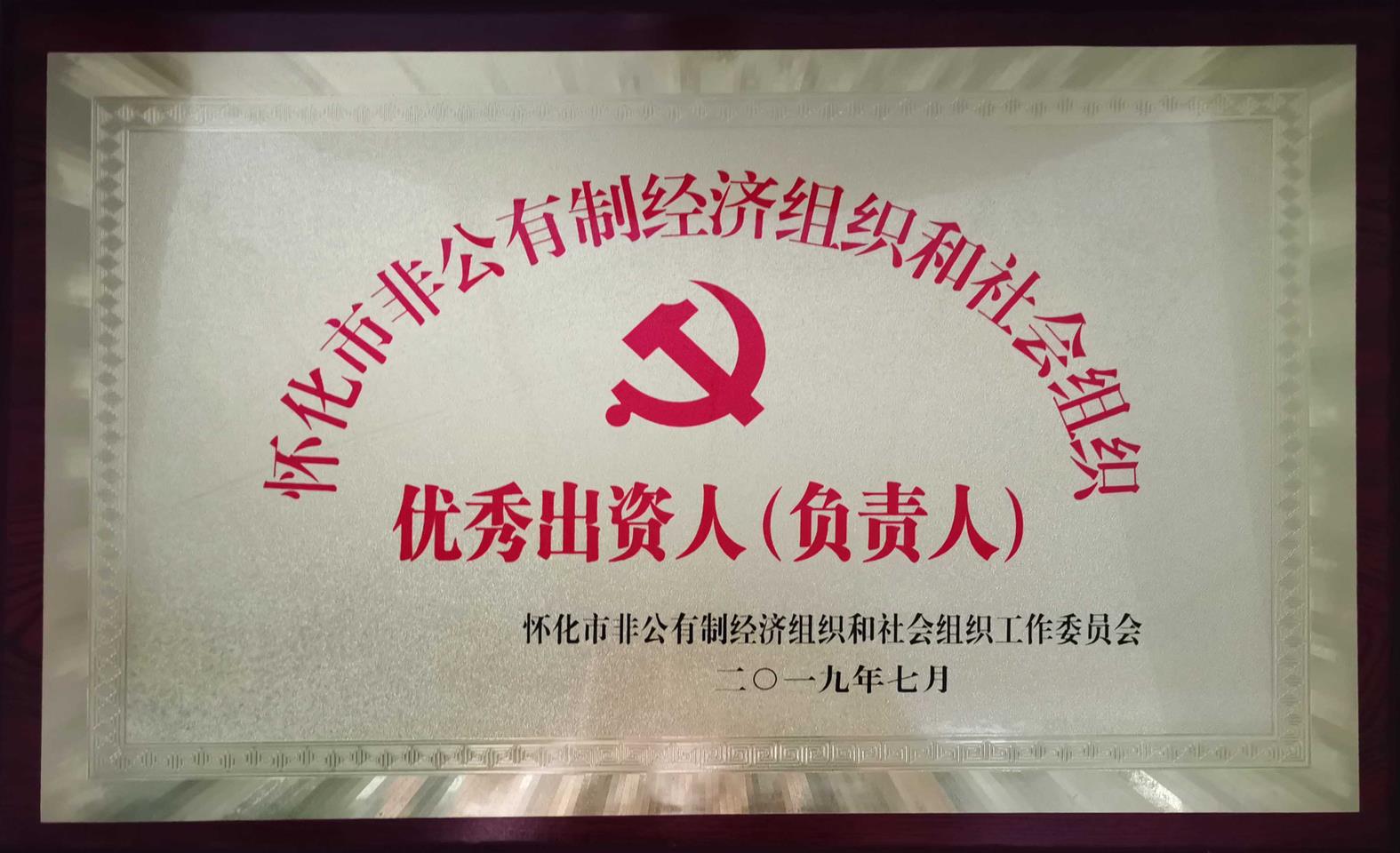 2019年7月被懷化市非公有制經(jīng)濟組織和社會組織工作委員會評為“懷化市非公有制經(jīng)濟組織和社會組織優(yōu)秀出資人(負責人)”